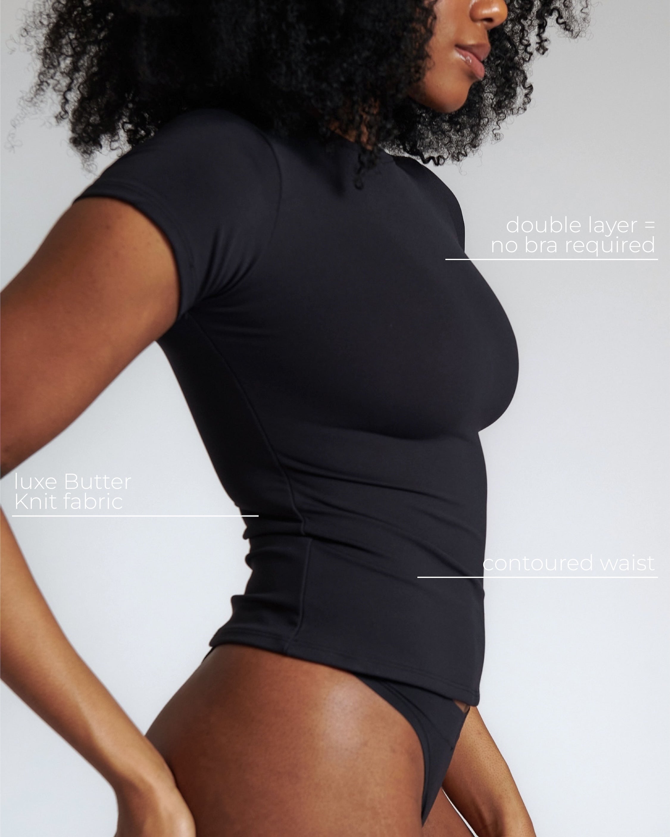 Introducing the tee shirt that will have you saying “IT’S PERFECT”, while we confidently nod, “WE TOLD YOU SO.” Meet THE PERFECT TEE. Made from a double layer of our ultra-soft Butter Knit fabric, it’s more than just a tee shirt—it’s a full-body experience. The PERFECT TEE gently embraces your natural shape without any compression, offering just the right amount of hold so you can go totally braless.