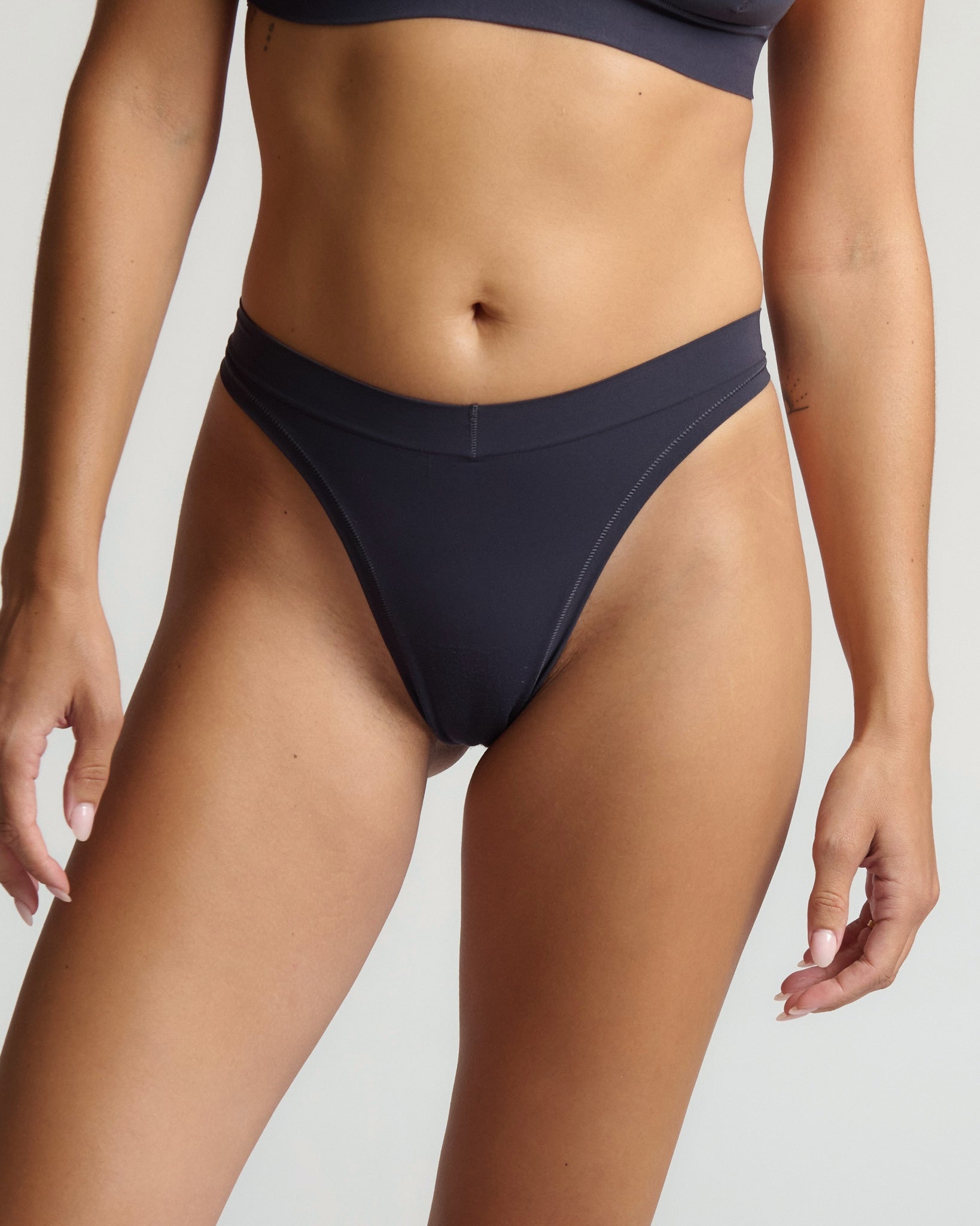 Made from our 360-degree stretch fabric, the Thong disappears under clothing, making it the perfect everyday essential. We like to keep our options open, so the mid-rise cut can sit high or low on the hips - your choice. The thong is antimicrobial, helping to control bacteria and keep things oh so fresh. Plus, cotton fibers are woven directly into the gusset, creating a thicker layer to keep you comfortable and dry.