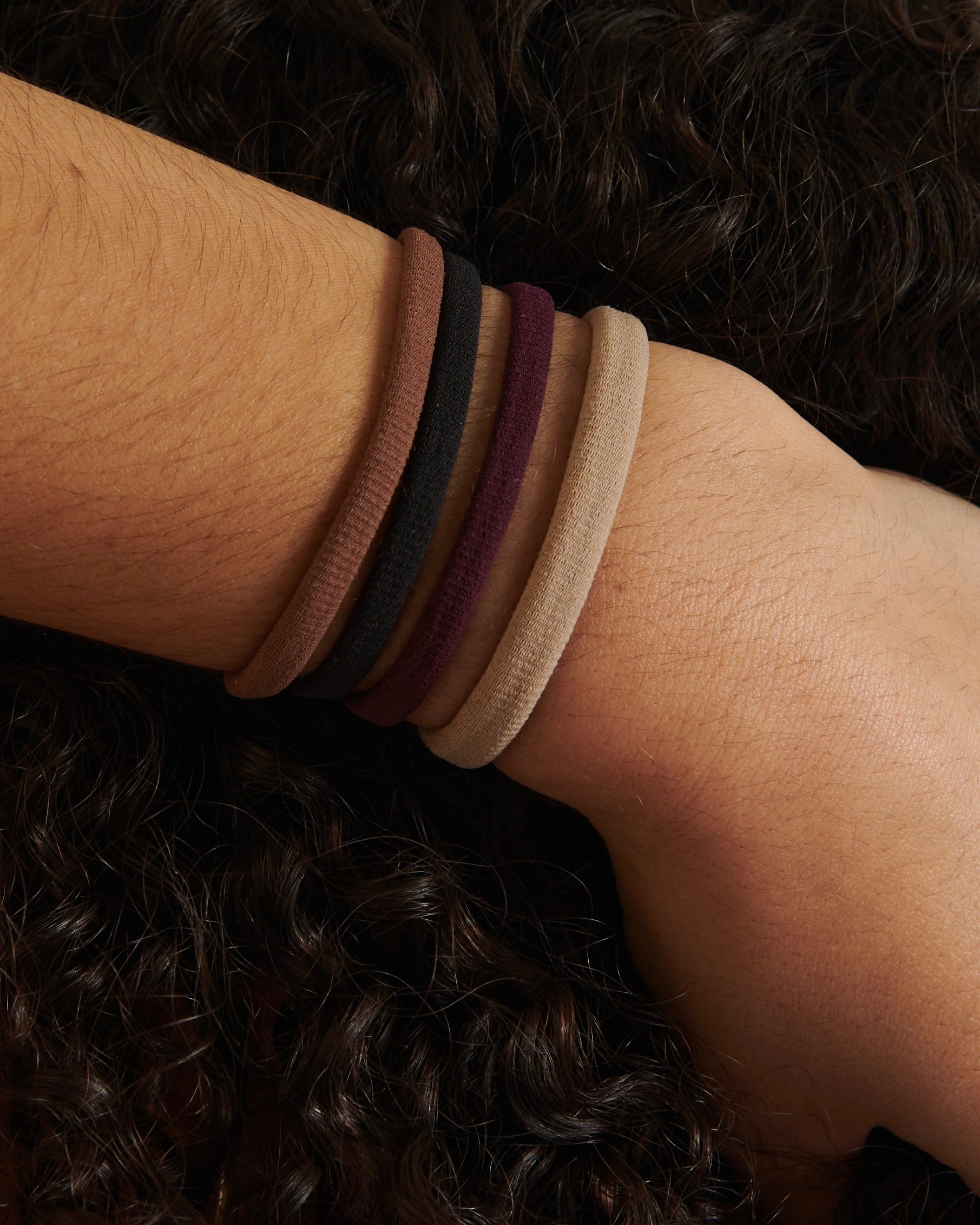 Meet our upcycled hair ties in assorted Nuudii colors. We do our best to have as little fabric waste as possible, but some pieces are inevitably left behind. We decided to upcycle these pieces into something usable - hair ties! So go ahead, get all tied up 😉